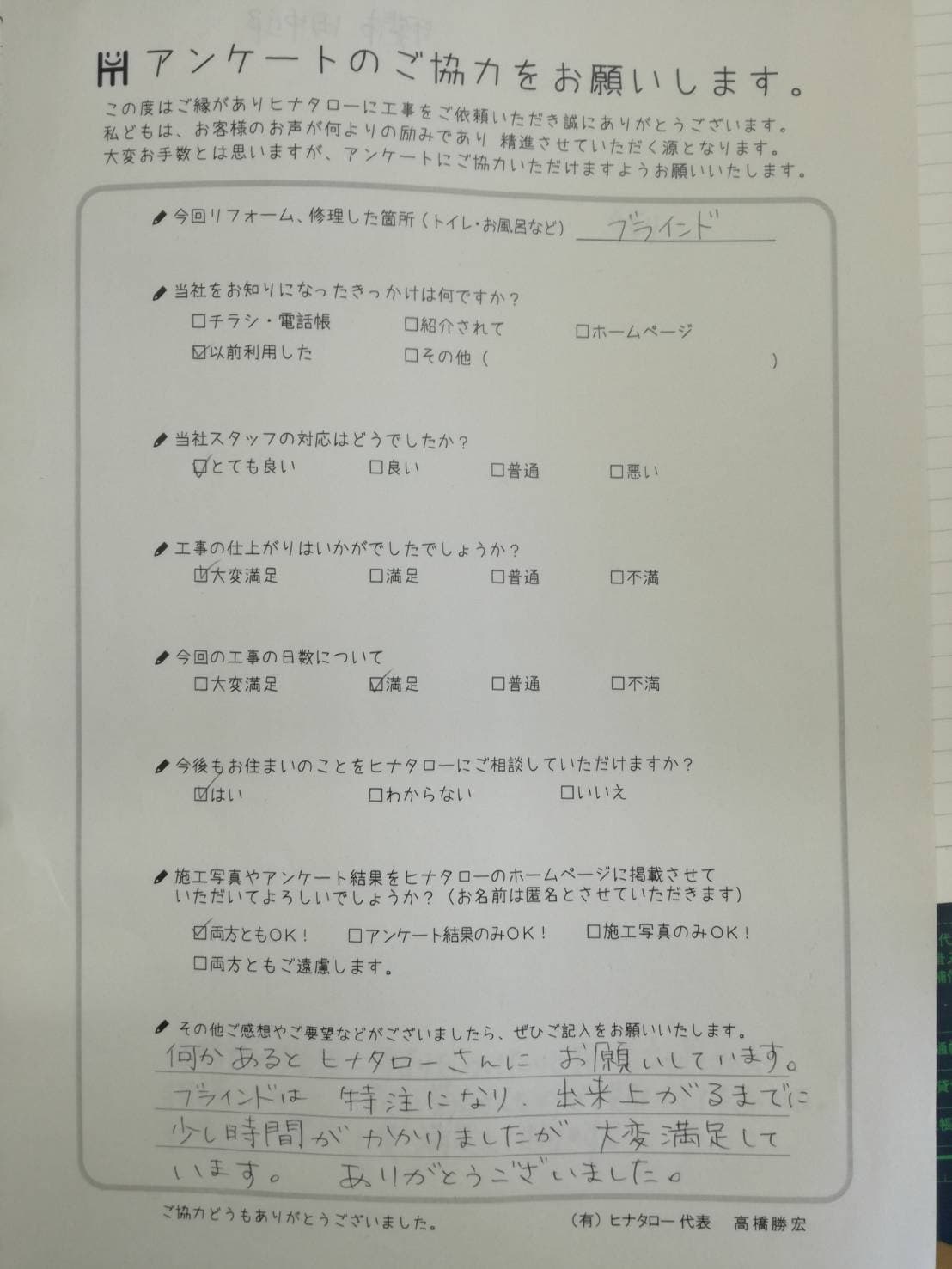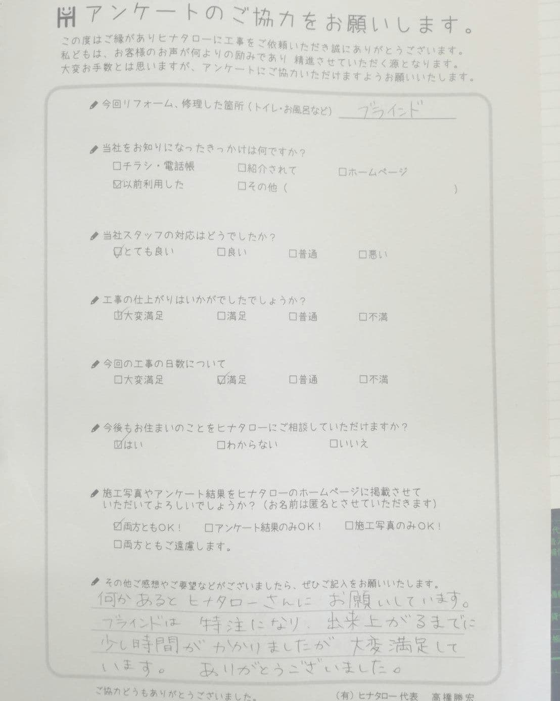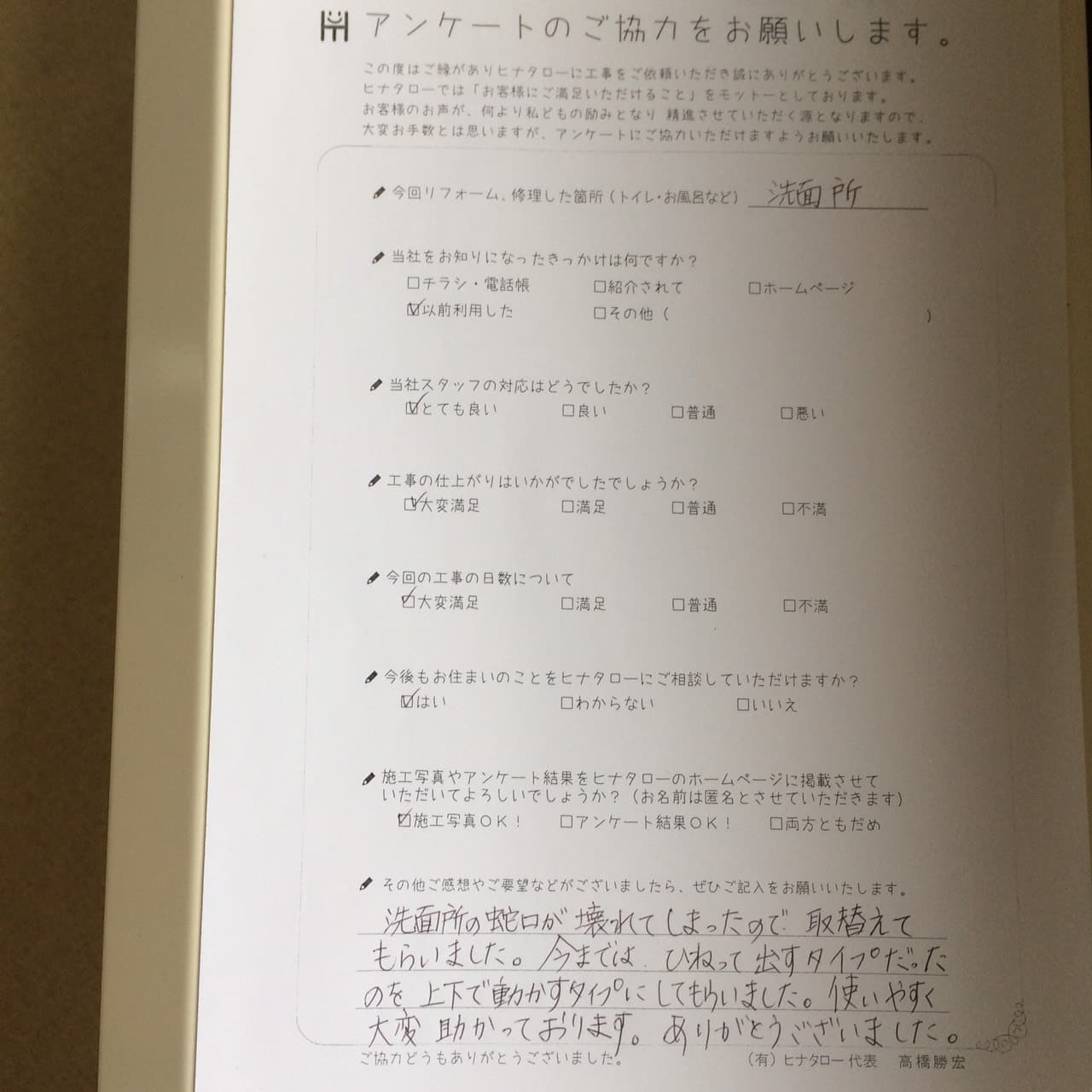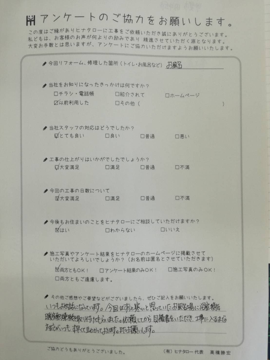 工事も大変よくして頂きありがとうございました。 |