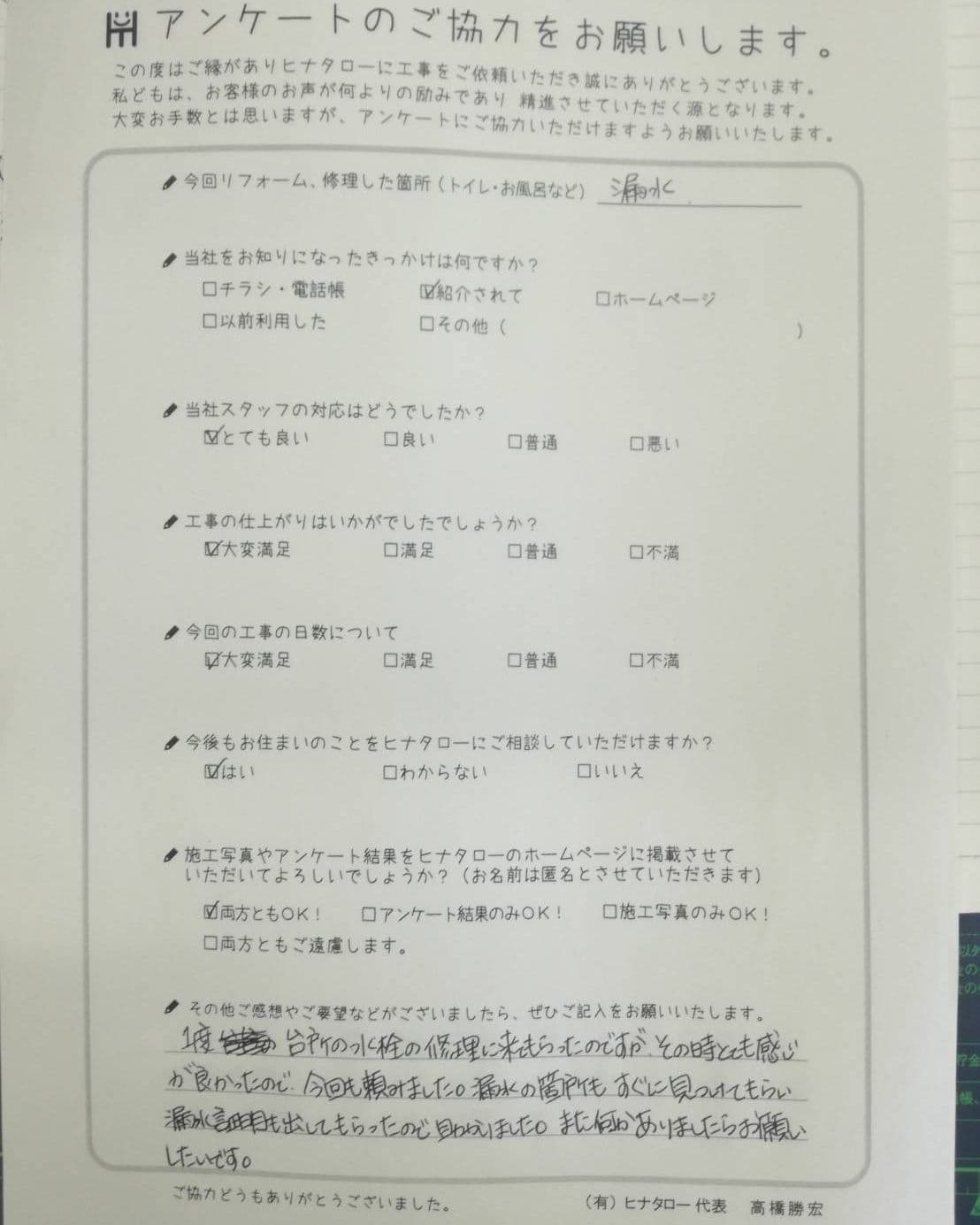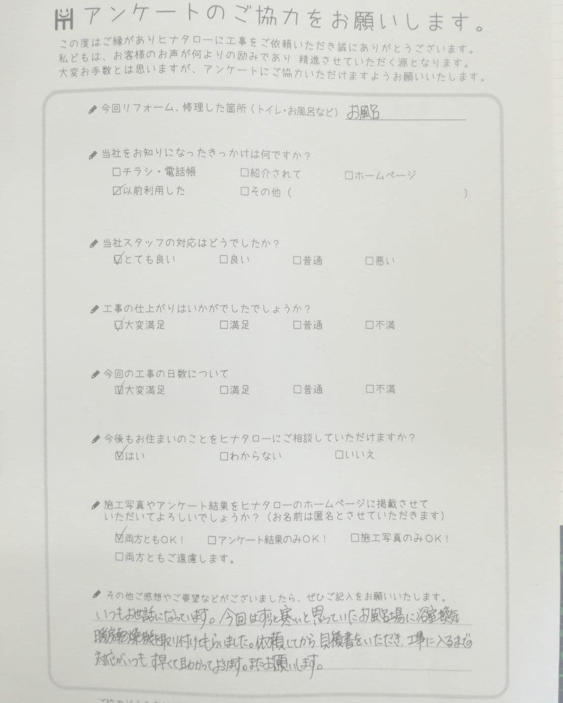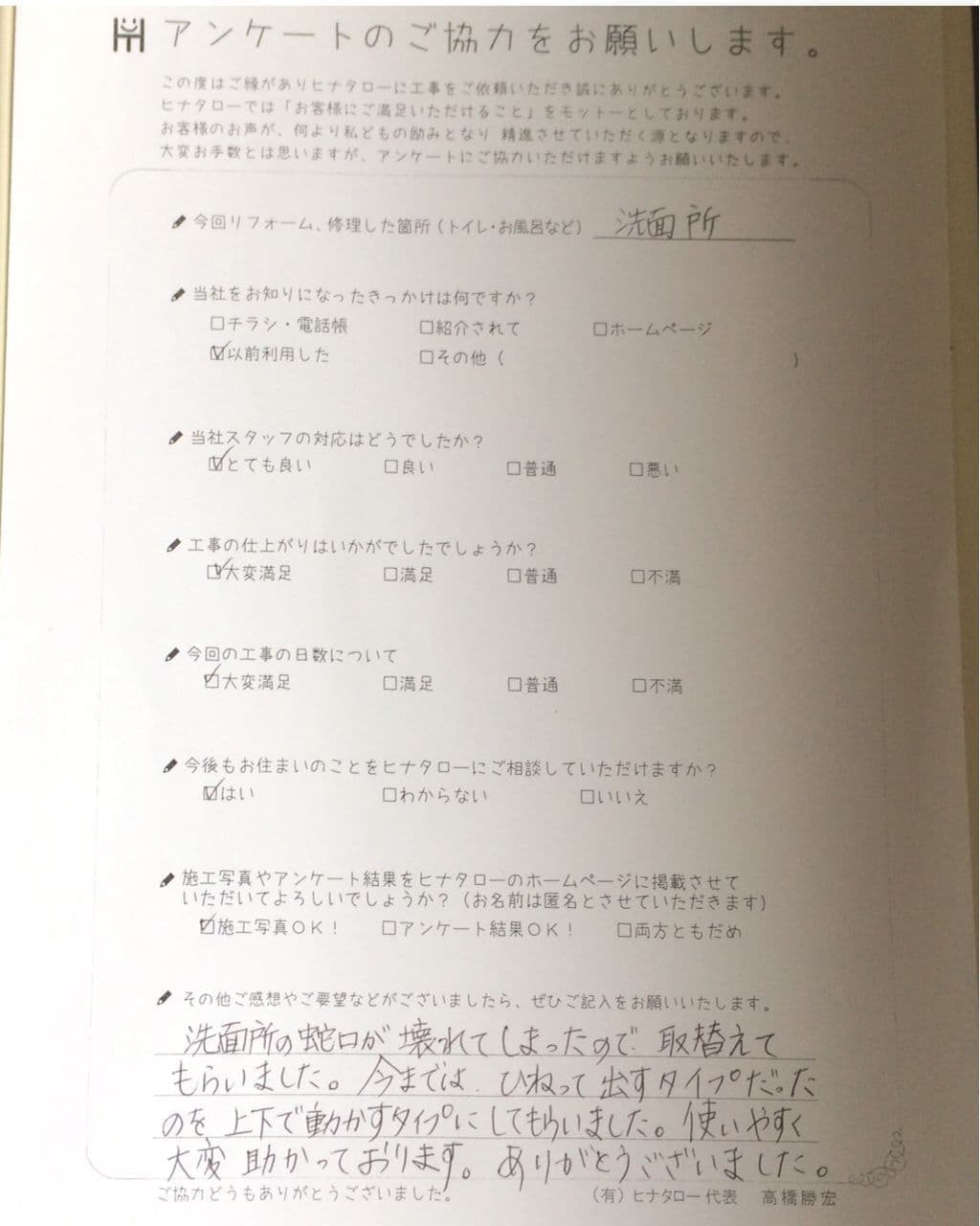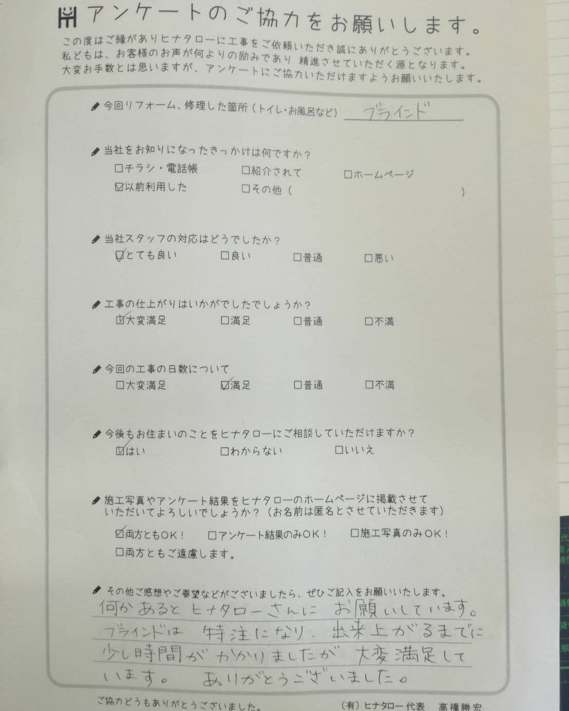 工事も大変よくして頂きありがとうございました。 |