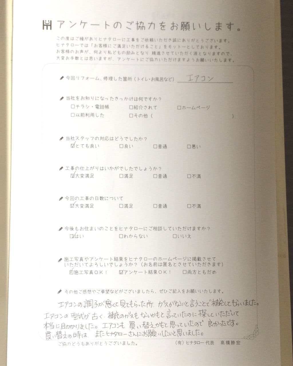 数十年程前、まだ高橋さんが独立する前にエアコンを付けてもらいました。 |