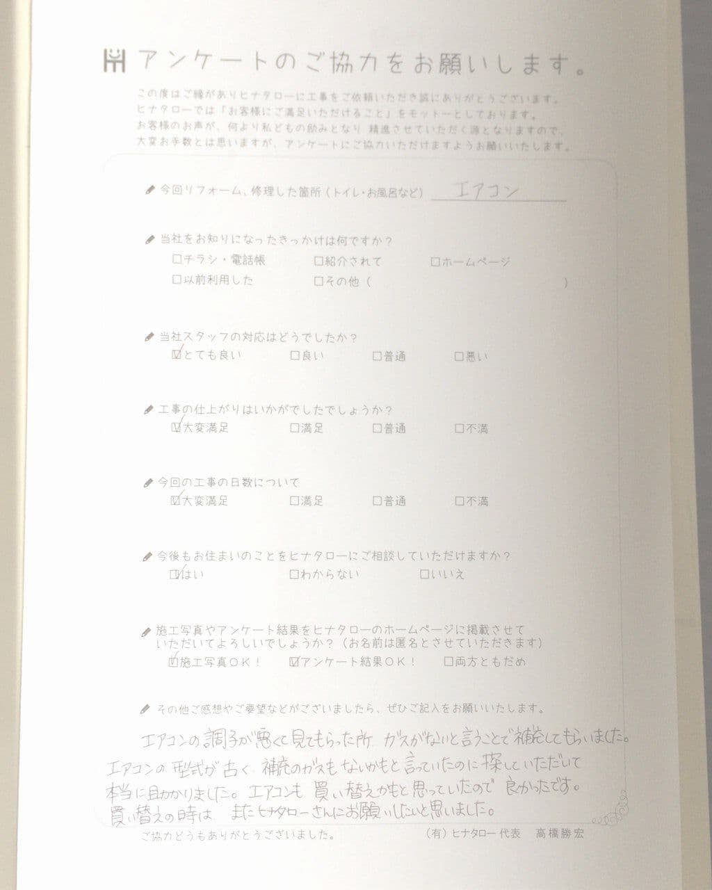 今回リフォーム・修理した箇所 | エアコン |