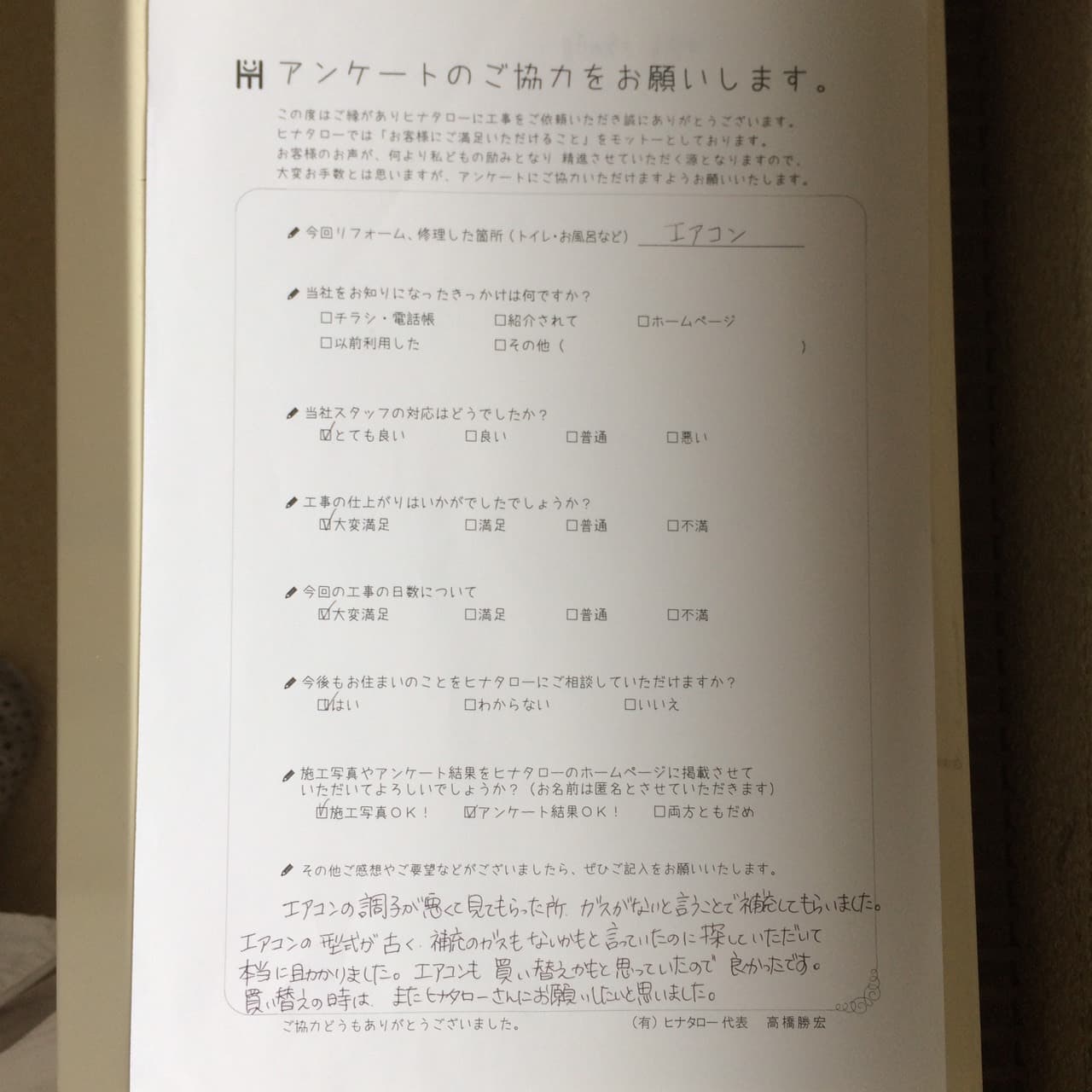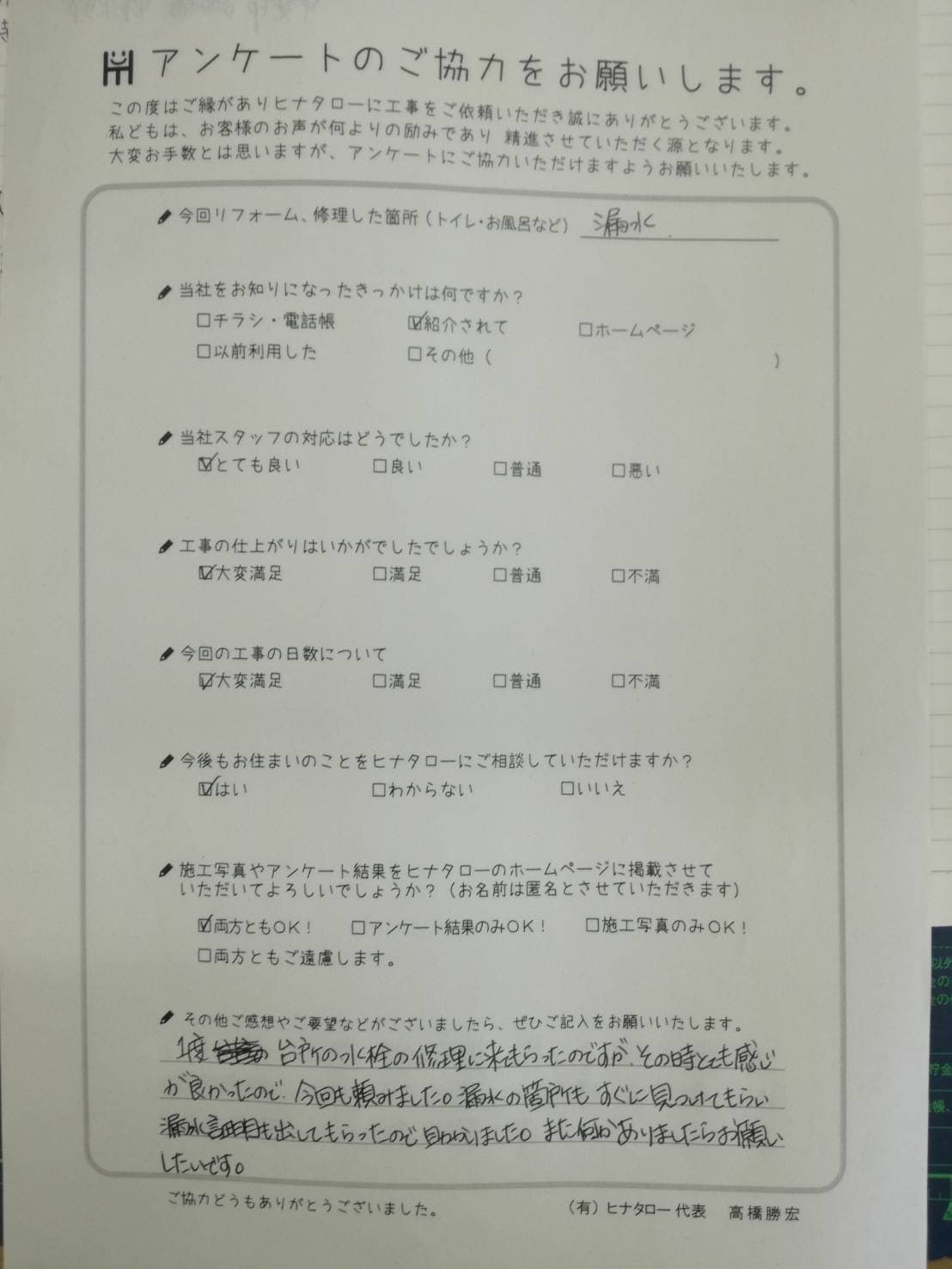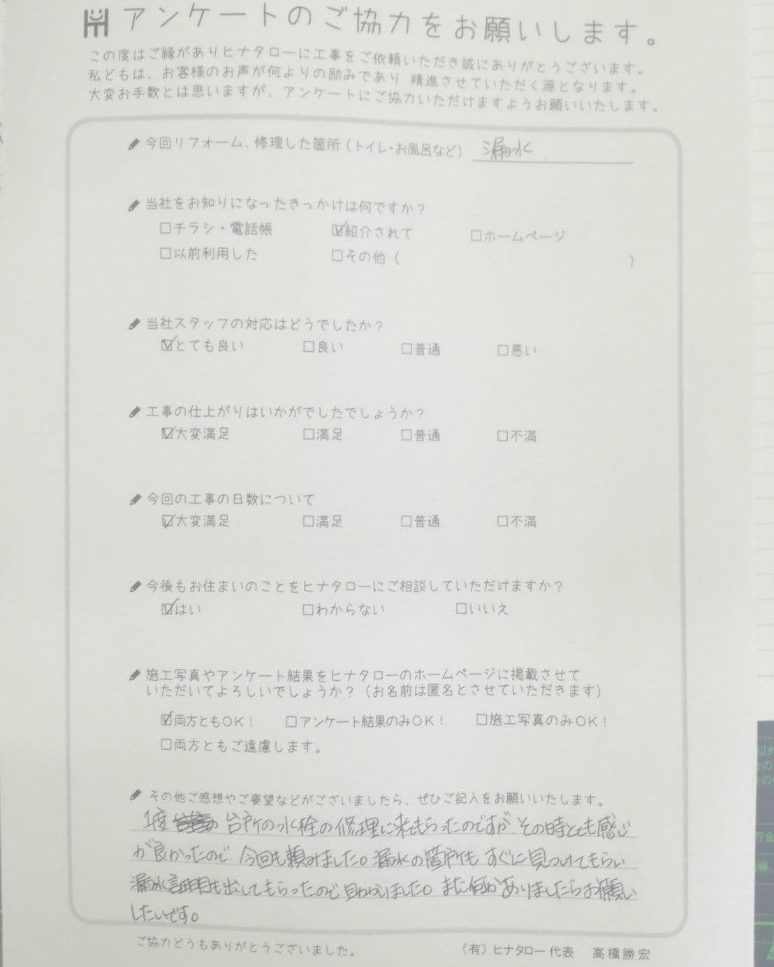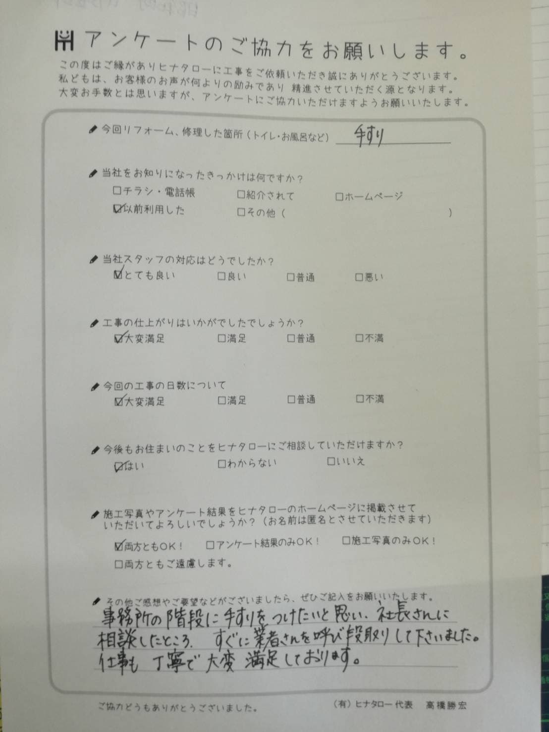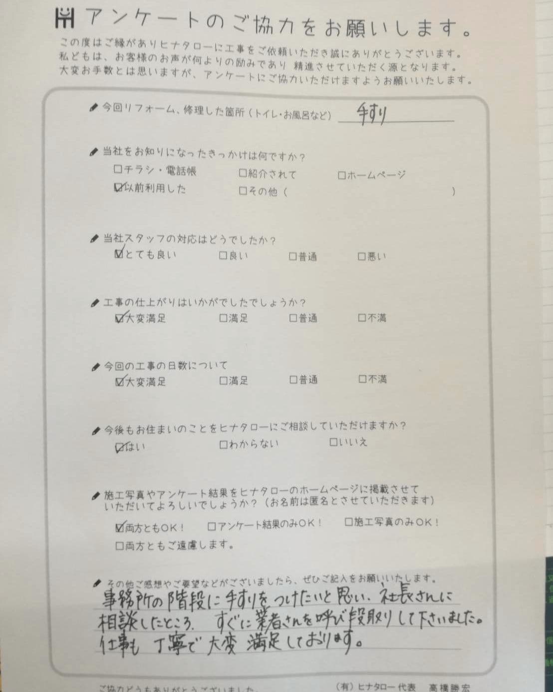 社長の笑顔が良いですね。どんな小さな仕事でも気遣いが感じられます。 |
