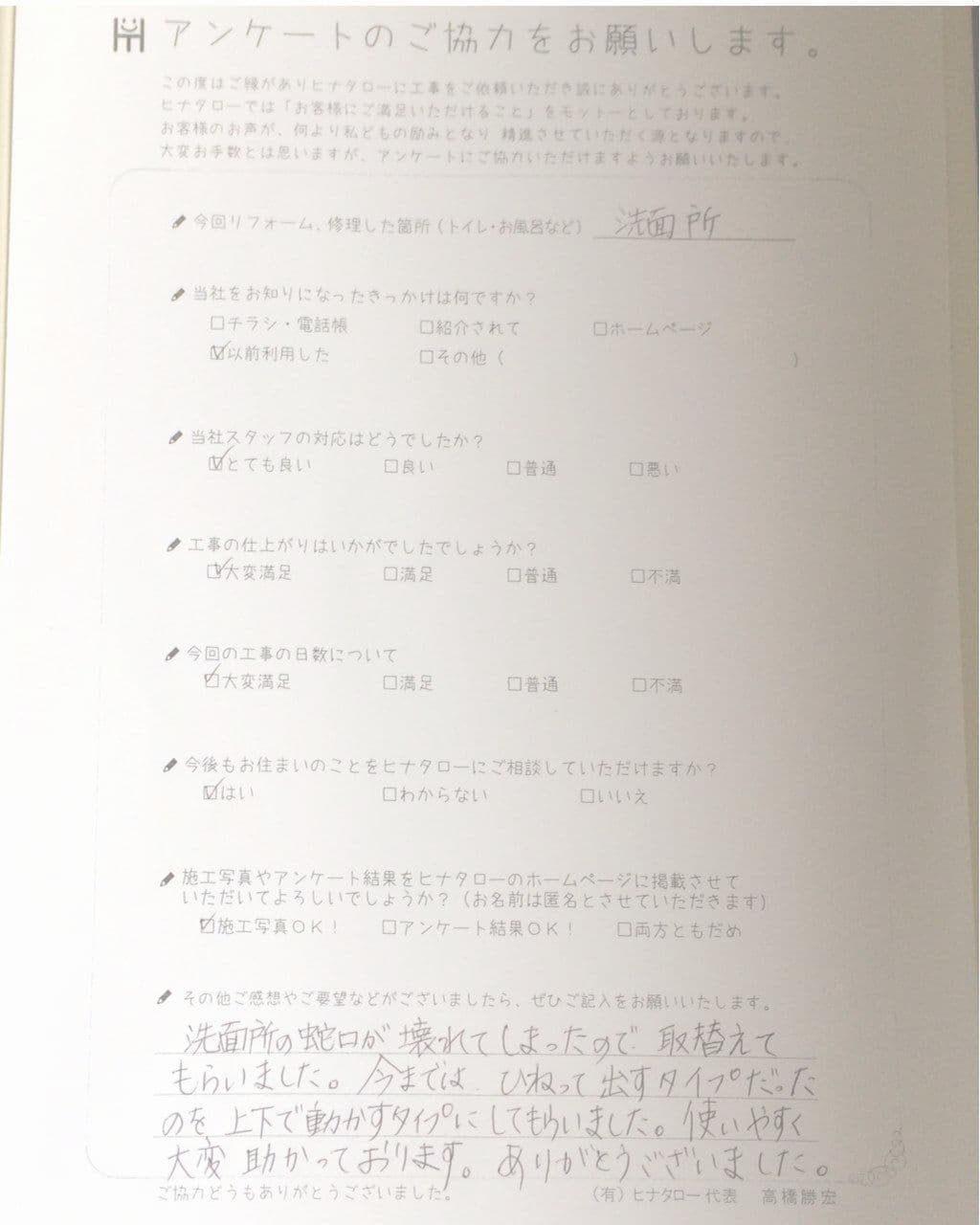 今回リフォーム・修理した箇所 | 洗面所 |