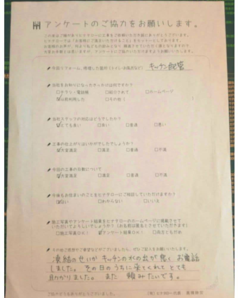 他の業者に頼んでいたのですがなかなか来てもらえず、ヒナタローさんにお願いしました所、 |
