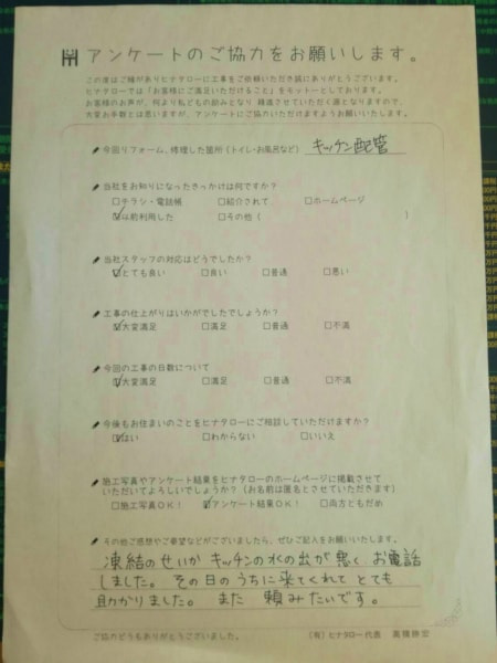 はじめは漏水だと思っていたのですが、給水をとりかえてもらうことになりました。 |