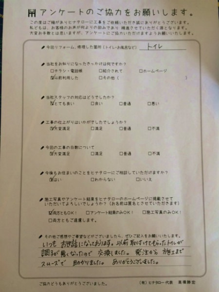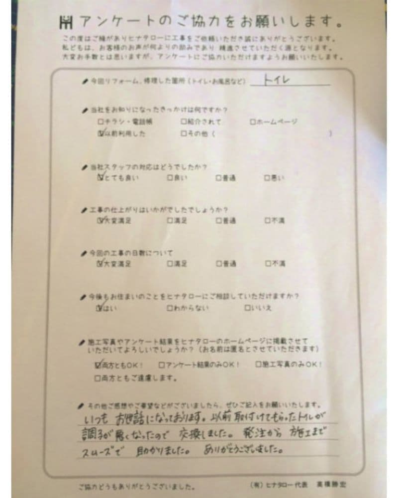 トイレ交換としてお願いしたところ、 |