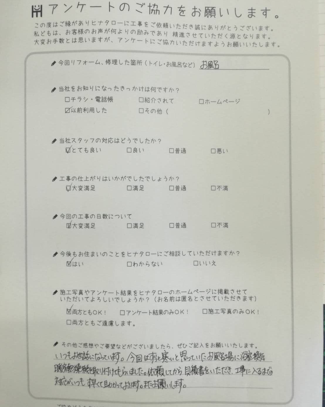 今回リフォーム・修理した箇所 | トイレ・お風呂場 |