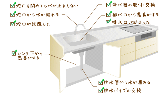 蛇口が壊れる・排水口が詰まる・油や生ゴミによる