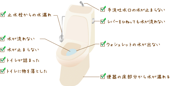 水が止まらないなどの症状が出ている場合、まず止水栓を閉めましょう。
